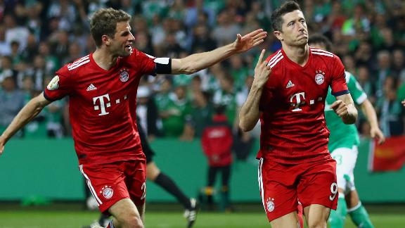 Bundesliga leaders Bayern Munich beat Werder Bremen 3-2 with two goals from Robert Lewandowski on Wednesday to advance to the German Cup final.