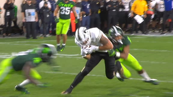 ![]() | TD 4:32 Cody White 2 Yd pass from Brian Lewerke (Matt Coghlin Kick) 9 plays, 80 yards, 3:40 | 7 | 28 | Lewerke fakes defenders, finds White for short TD (0:38) Brian Lewerke fakes a run and then passes to Cody White in the end zone for the 2-yard Michigan State score. (0:38) |