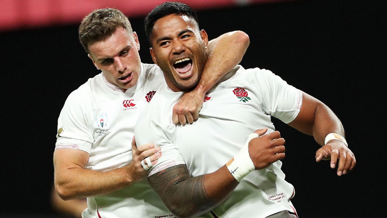 A first-half double from Manu Tuilagi and a late bonus-point sealing try by substitute Luke Cowan-Dickie gave England the perfect start to their Rugby World Cup campaign.